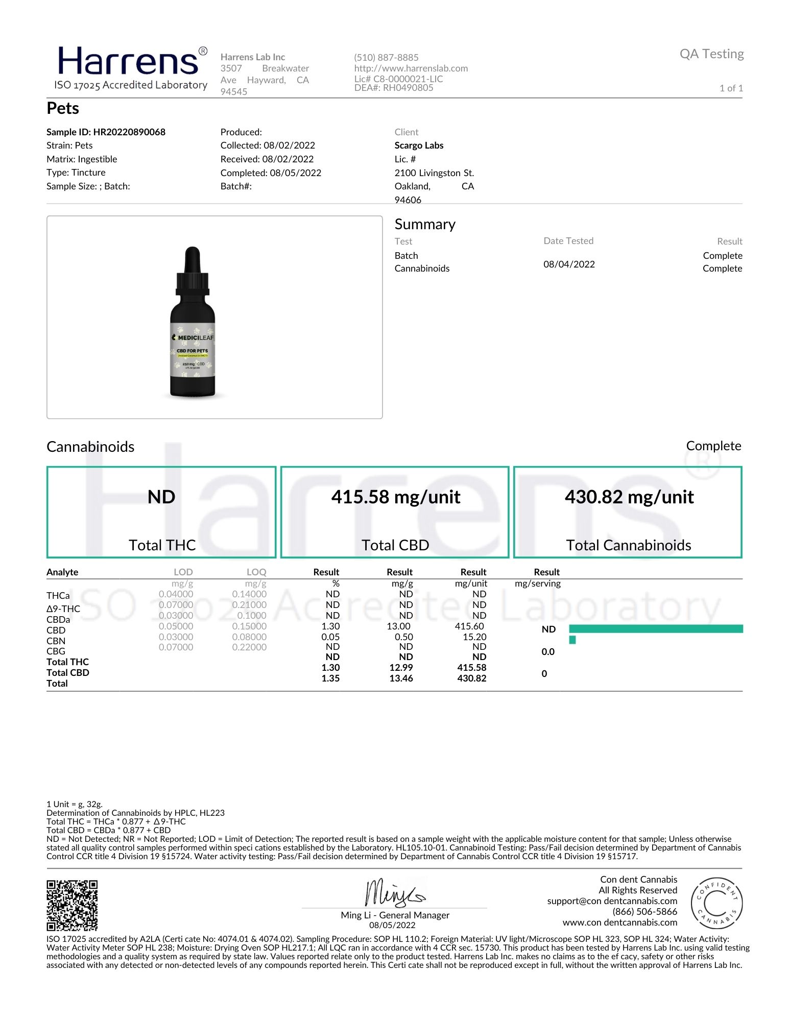 - COA Medicileaf Full Profile CBD Tincture 1500 MG